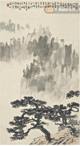 ▲ 徐悲鸿《天都松云》纸本水墨设色 立轴 1938年作