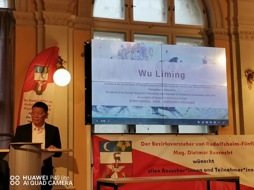 协办方 欧洲杭州联谊总会、总商会秘书长,奥地利杭州华人华侨协会会长 吴黎明 发表讲话