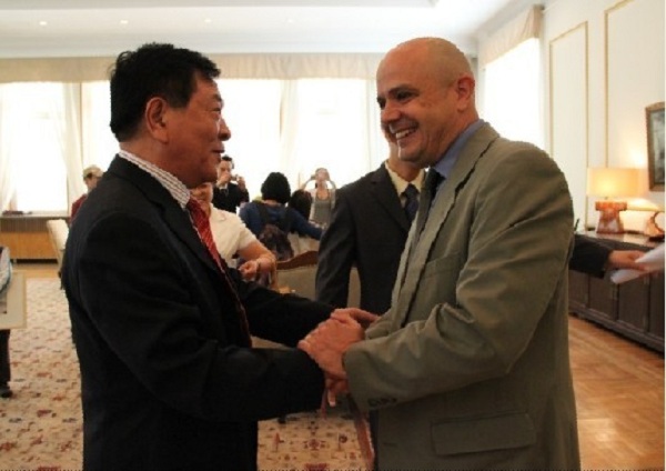 土耳其驻中国大使与全国青少年儿童文化艺术展评活动委员会张主席亲切握手