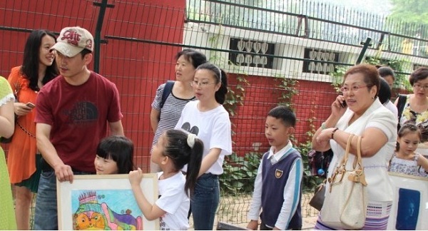 孩子们带着赠送给土耳其政府的作品进入土耳其驻中国大使馆